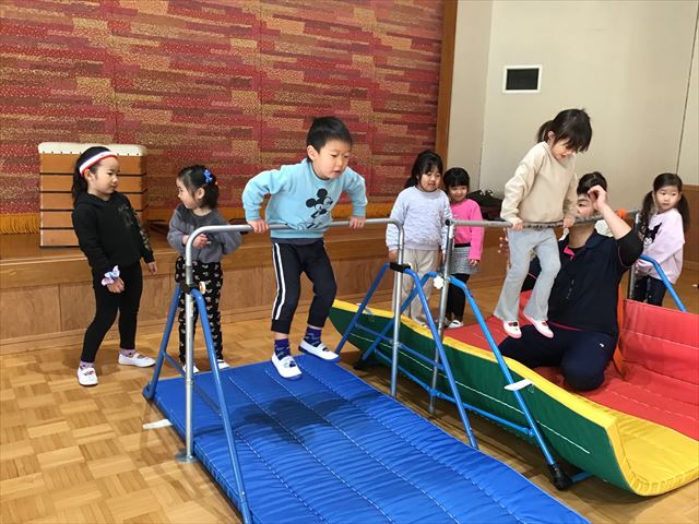 保育園での日常的な保育の風景です。子どもたちは、みんな楽しく元気に過ごしています。