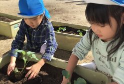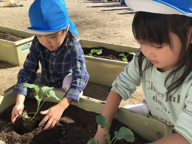 冬野菜を育てています。日に日に大きくなる葉っぱを見て、「げんきだね」「お水あげないと」と言いながら率先して水やりしてくれます!収穫が楽しみだね。