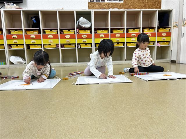 保育園での日常的な保育の風景です。子どもたちは、みんな楽しく元気に過ごしています。