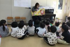 毎月楽しいお話会を開いてくれるえっちゃん。今月はなんと楽器を使って絵本を見る場面もあり、みんな何の楽器にしようかと大興奮!みんなでリズムに乗りながら自分たちが選んだ楽器を鳴らして、また一味違ったお話会になりました。