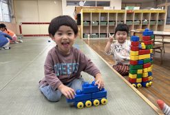 自分たちの作りたい物をブロックなどの玩具で作ることが出来るようになってきた子が増えてきました。毎日「できたよー!」「先生見て~」と嬉しそうに作品を見せてくれます。