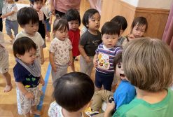 夏祭りに参加しました。保育士の真似をしながら盆踊りを踊ったり、ヨーヨー釣りをしたり、いつもと違う雰囲気にみんなワクワクしている様子でした。みんなで整列した瞬間を「パチリ」みんなとっても可愛いですね。楽しい夏の思い出ができたね♡