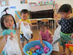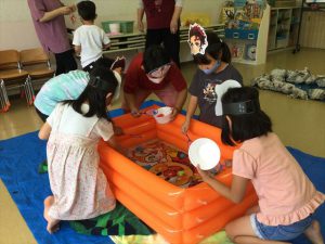 今回は、各クラスでの活動になってしまいましたが、それぞれのコーナーをクラスに設置し、楽しむことが出来ました。夏の楽しい思い出になってくれたら嬉しいです。