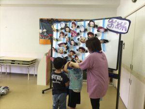 以上児は、少しお面の種類を変えました。子ども達の人気のある物を用意しました。