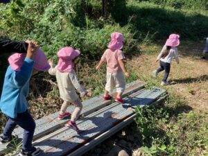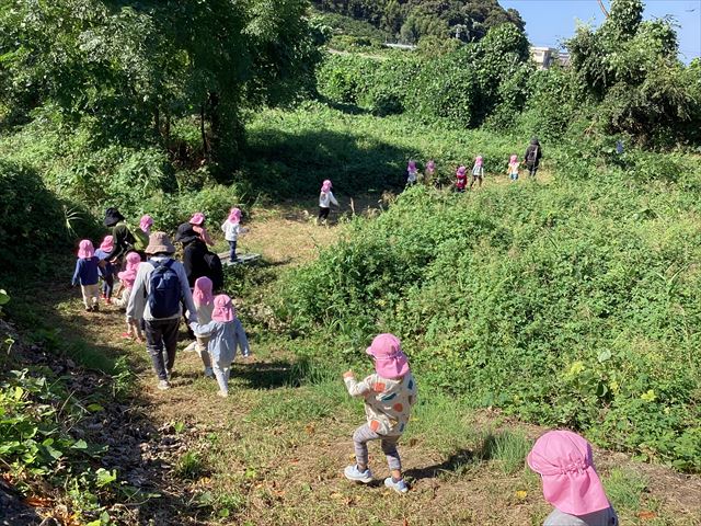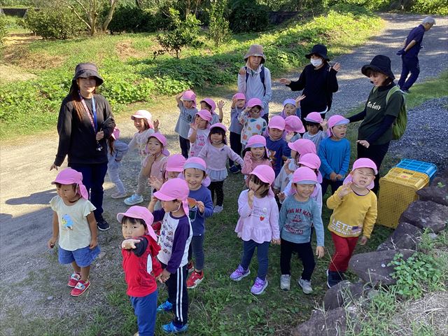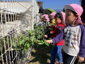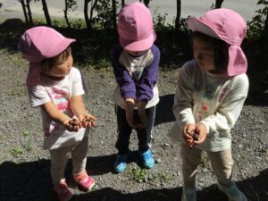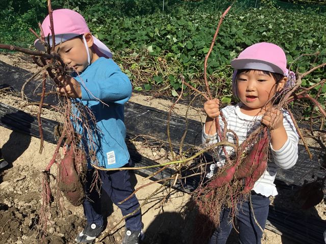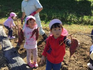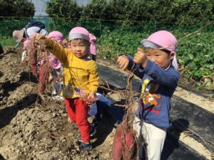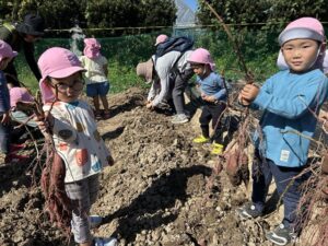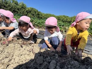 10月10日 アルムの里自然体験で、年少児がさつまいも掘りを体験をしました。