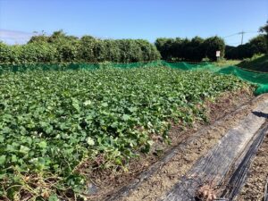 畑に着きました!!今回は掘りやすいように、アルムの里の職員さんが葉っぱを切ってくれていました。