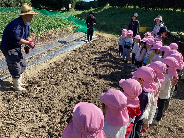 さつまいもの掘り方を丁寧に教えて頂きました。上手にお話を聞いています。