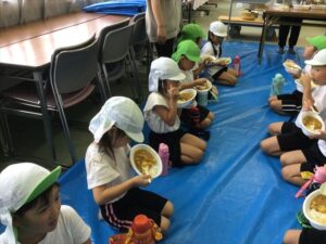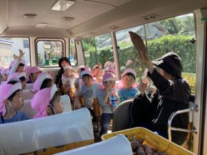 帰りのバスでは、収穫したさつまいもを見て、お家で何を作ってもらおうかと作戦会議を行いました。