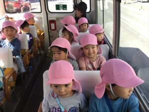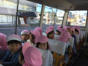 バスの中でどんなさつまいもが掘れるかなあ?とお話をして楽しみました。
