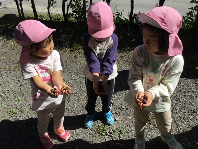 帰りのバスに乗る前にどんぐりがたくさん落ちていたので、どんぐりも拾って楽しみました。