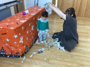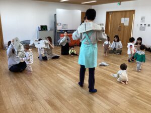 一本橋~東京都日本橋~あぶくたった~大根漬けなど、色々なこちょこちょ遊びで沢山笑ったら、『おばけなんてないさ』のお歌に合わせて、ふれあい遊びも♪♪