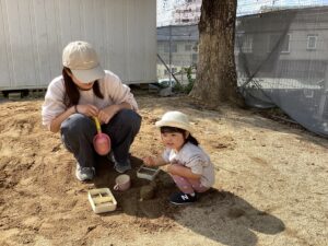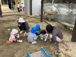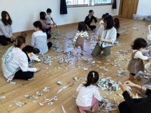 リトミックを楽しんだ後は、逸見先生が秋を感じるまつぼっくりやくりを見せてくれました🌰