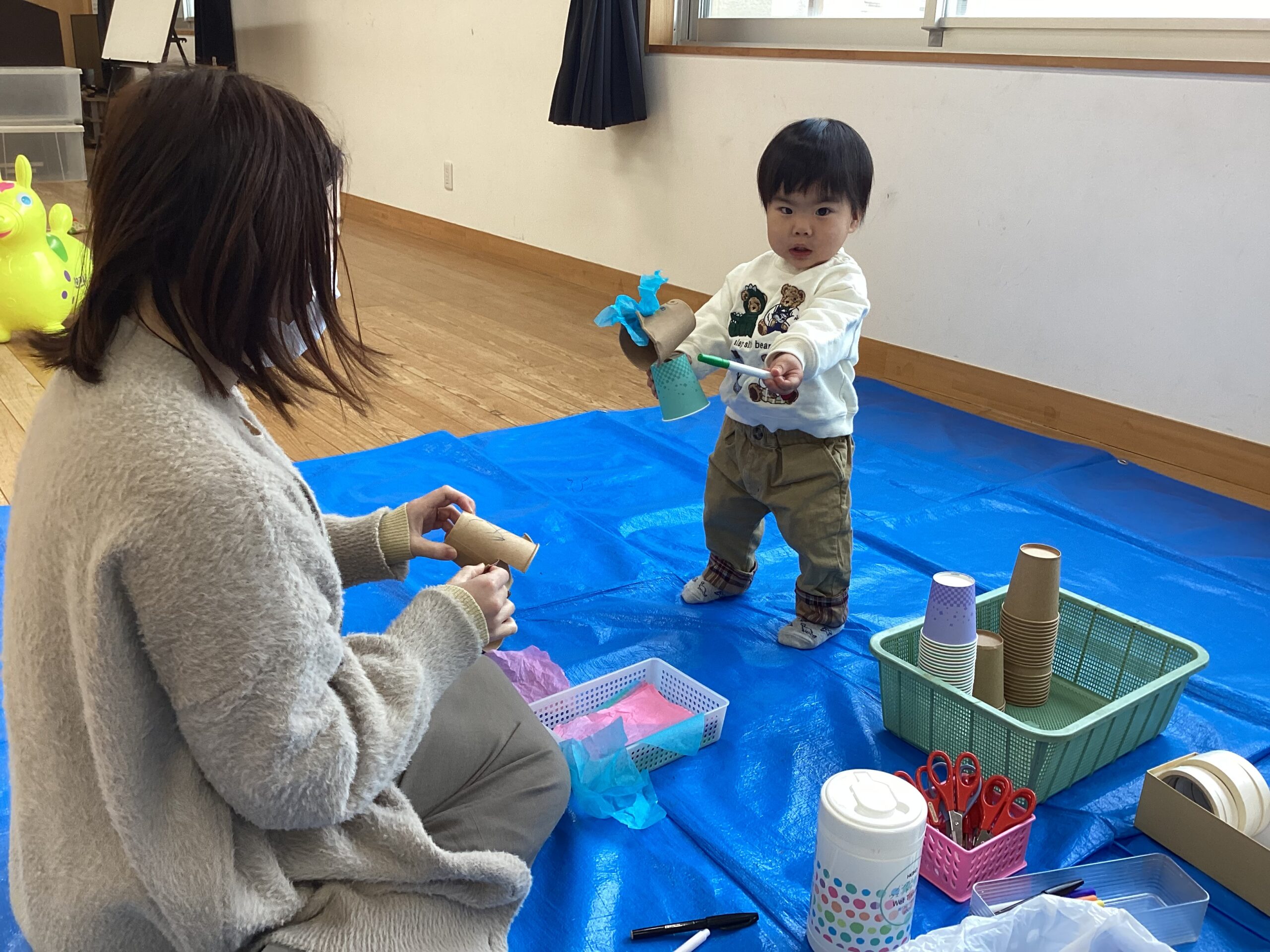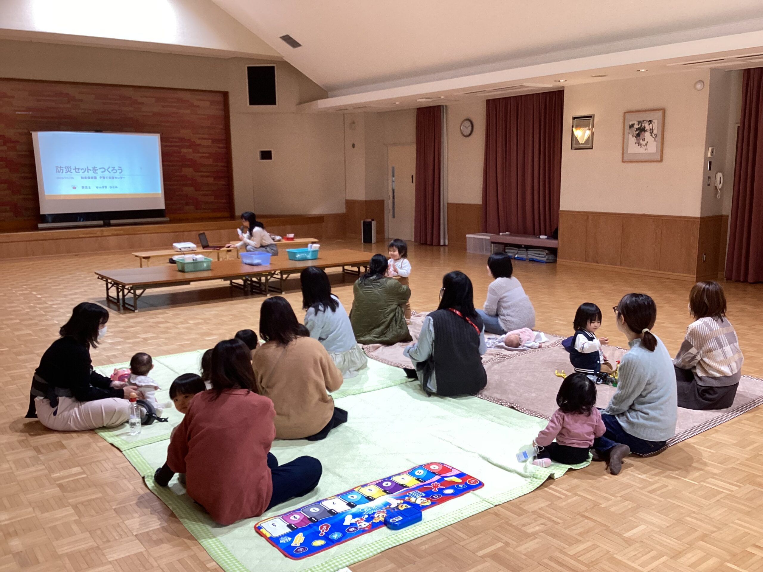 今日は『防災ポーチを作ろう!』の育児講座がありました。