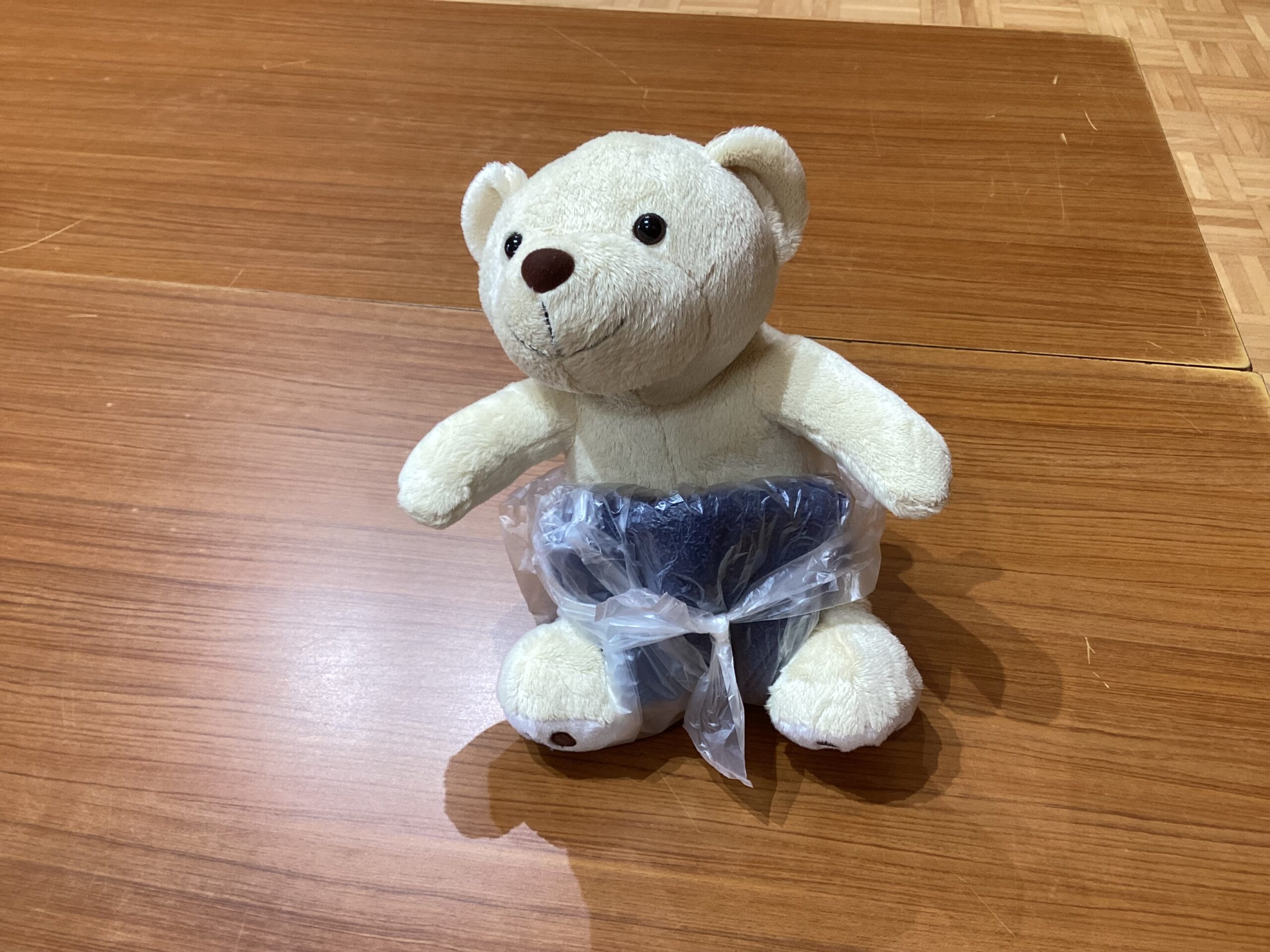 ビニール袋を切って、中にはタオルが入っています。