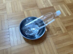 ペットボトル水道は、蓋つきのペットボトルに小さな穴をあけるだけで簡単に作ることができるそうです。