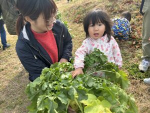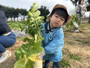 大根が大きく育っていて抜くのが大変でしたが、抜けるとみんな笑顔に😊✨