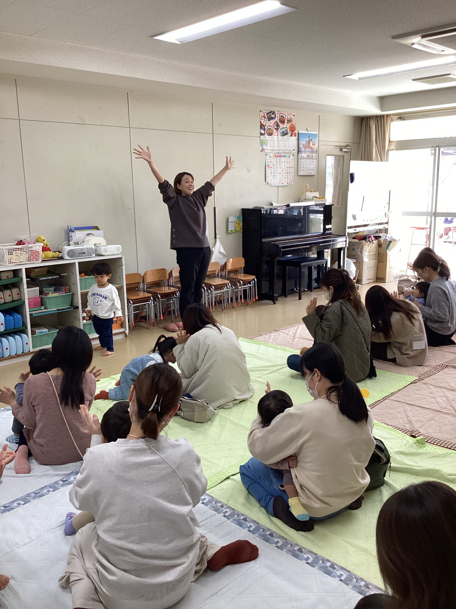Music Conductorの逸見よしこ先生と一緒に、ピアノの生演奏でお歌やふれあい遊び、リトミックを楽しみました🎹