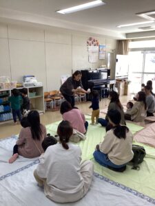 それでは、今日は絵本とわらべ歌で遊びますよ♪♪