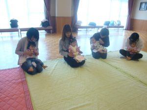 「おはよう!」とみんなで元気よく起き上がったら、今度はお母さんのお膝に座ります。