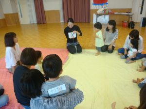 最初は「げんこつやまのたぬきさん」など、みんながよく知っている歌に合わせて手遊び。歌を口ずさみながら親子でスキンシップを楽しみました。