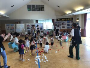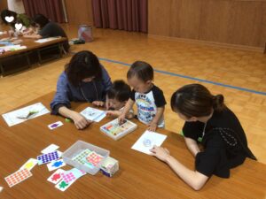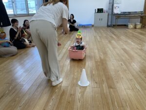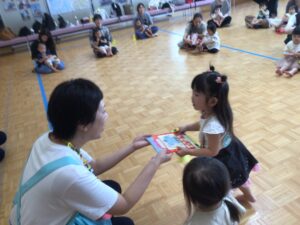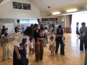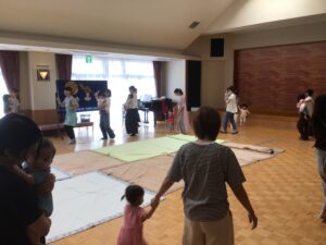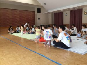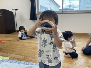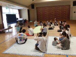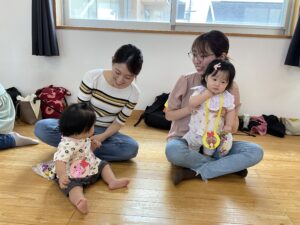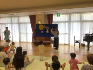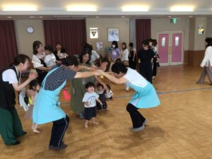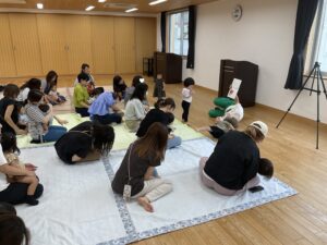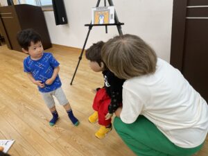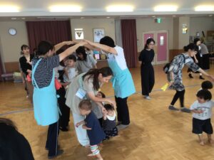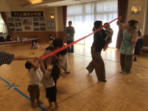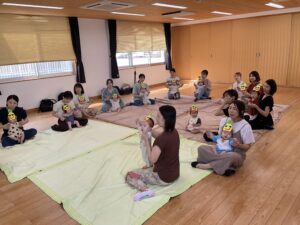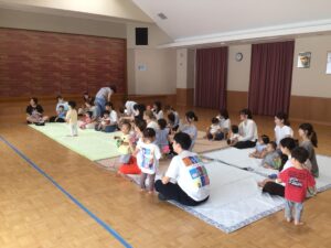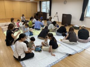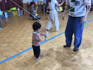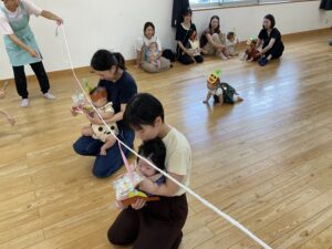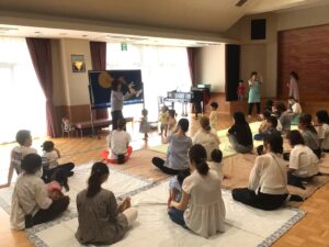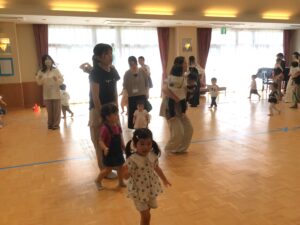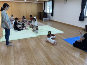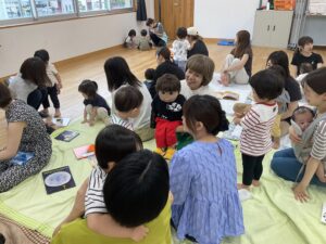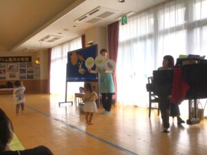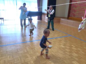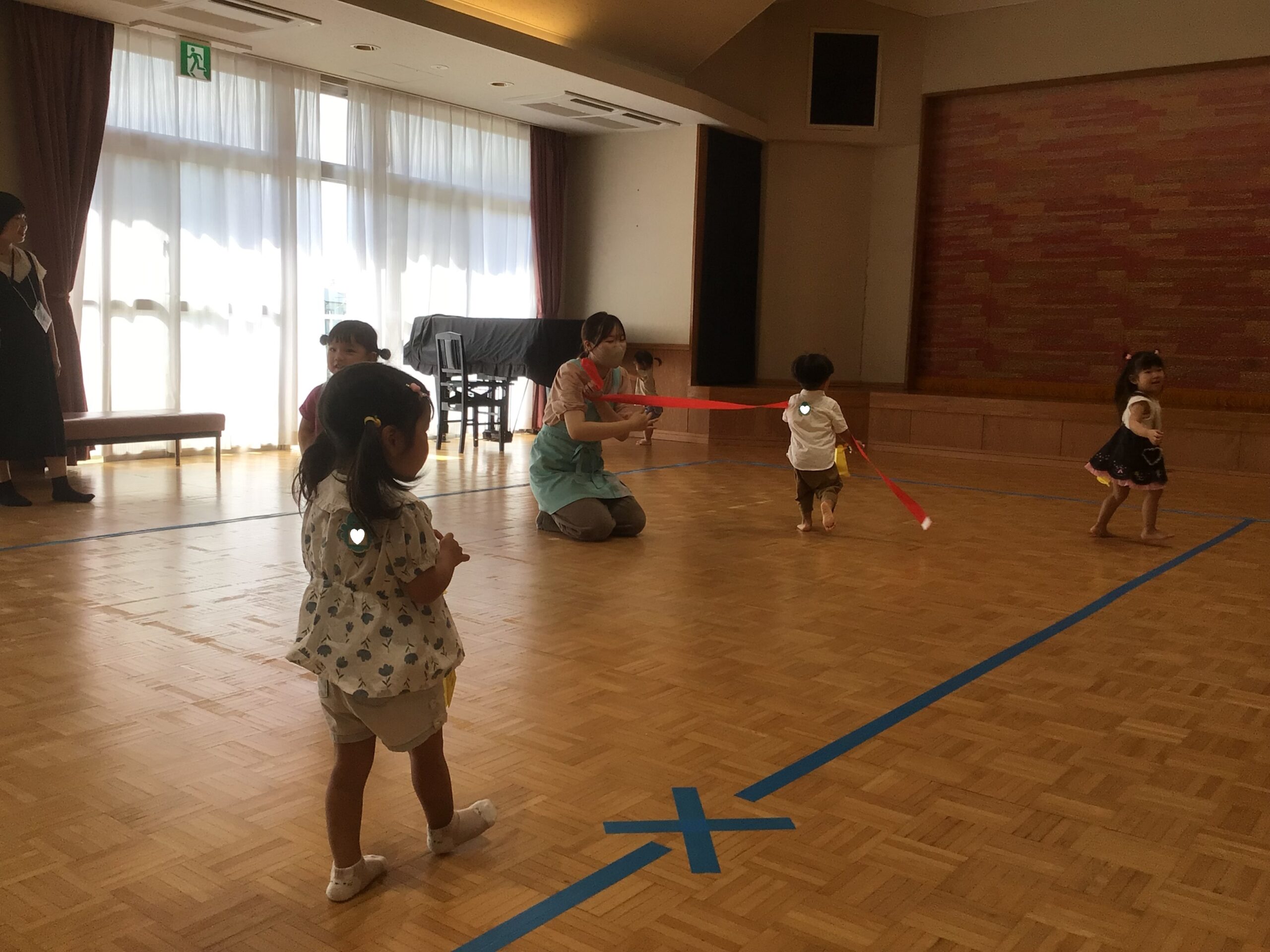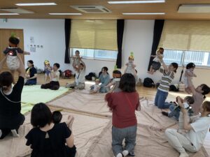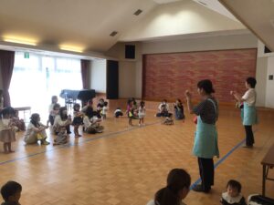 『つき』や『うさぎがぴょん』などの童謡は、イメージがしやすい歌詞で、お月様を表現したり、ぴょんぴょんうさぎさんになってジャンプしたり、みんなとっても嬉しそうでした♪♪