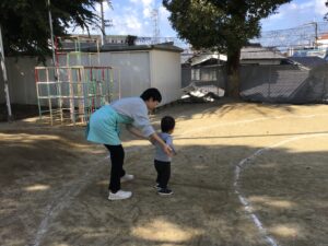 のお歌に合わせて手の平や足の裏、背中、ほっぺを