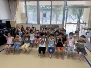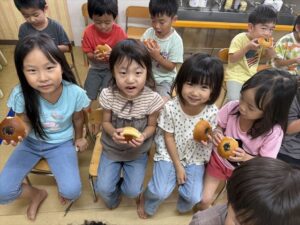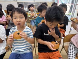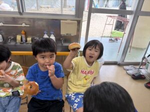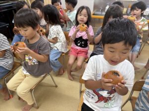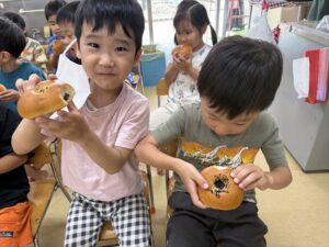 焼いたパンの香りを嬉しそうに匂っていました。自分達で作ったあんぱんは格別です。