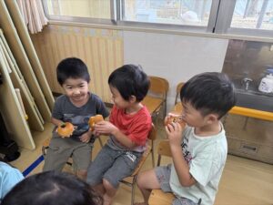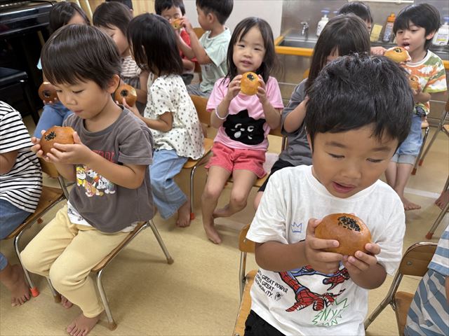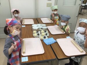 焼きあがったあんぱんは、園でおやつの時間に食べる予定です。