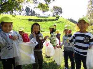 今日はみんなが待ちに待った“どんぐり拾い”の日でした!天候もよく、とても気持ちのいい秋晴れでした!
