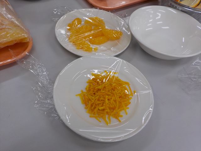 ①伊予柑の皮を丁寧にスプーンでのけます。(この人手間がポイントです。大変な作業ありがとうございます。)