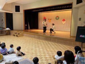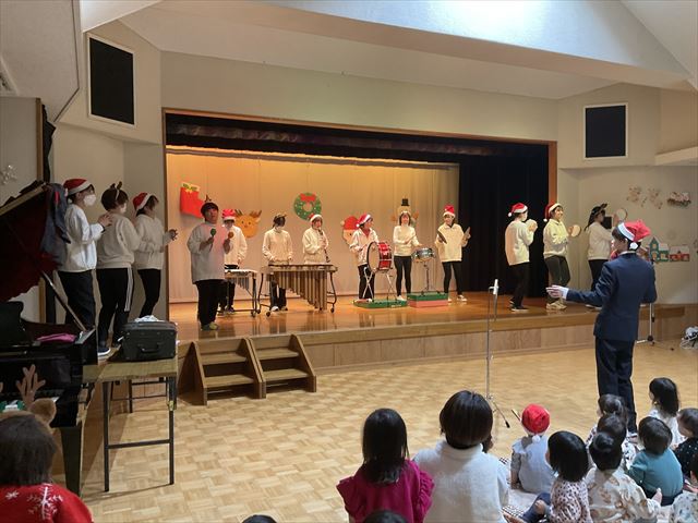 その後は、先生達の出し物です!!先生達が、『あわてんぼうのサンタクロース』の合奏をしたり、漫才を披露しました。