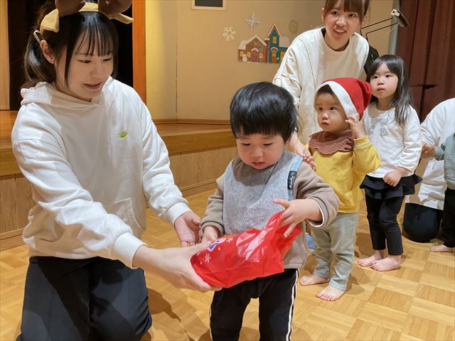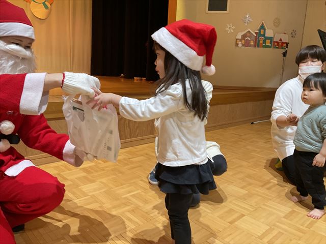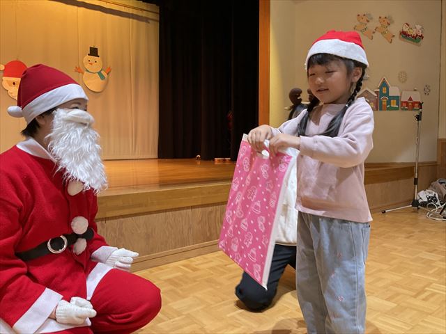 最後に、サンタクロースが登場して、みんなにプレゼントを持って来てくれました。
