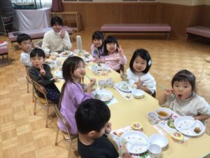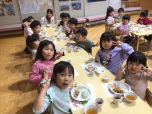みんなで食べるとおいしね!!おかわりもたくさんしていましたよ。