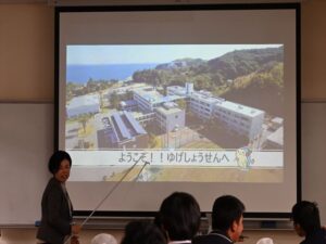 ホールでは、お土産を渡したり、お礼に弓削商船高等専門学校の校歌を歌いました。
