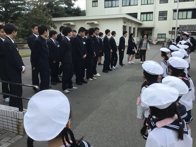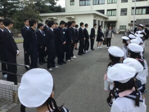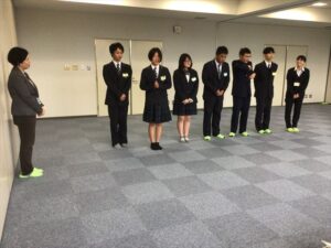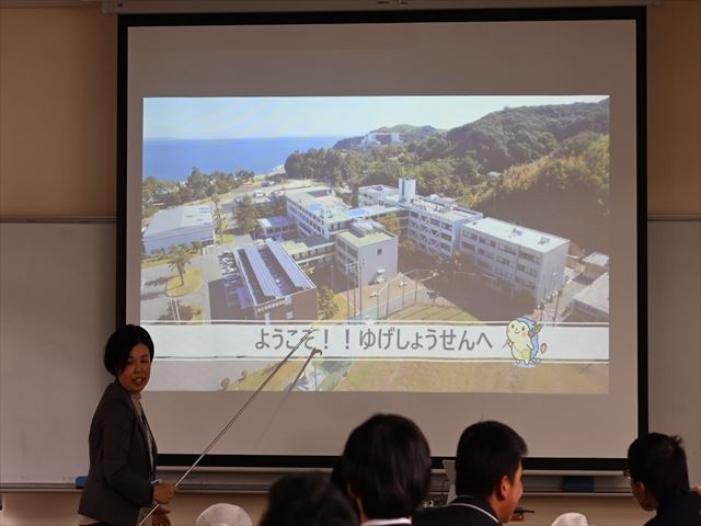 到着すると、弓削商船高等専門学校の3年生の学生さんが、お出迎えをしてくれました。