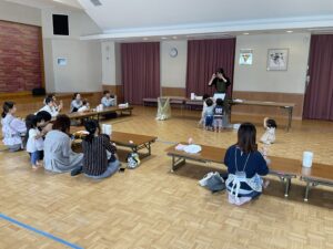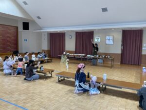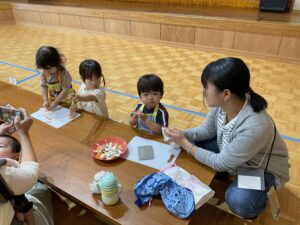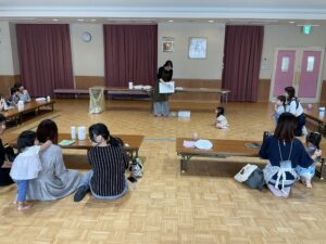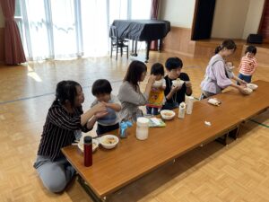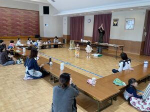 ぐつぐつ煮込んでいる間に、千崎先生が手遊びやマグネットシアター、くいしんぼうのゴリラの遊びをしてくれました😊♪♪
