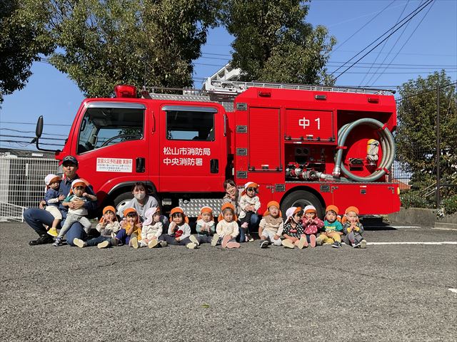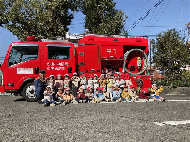 消防車のシャッターやドアを開けてもらって中を見せてもらってとても嬉しそうにしていましたよ。