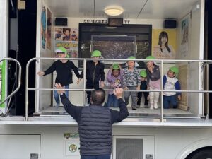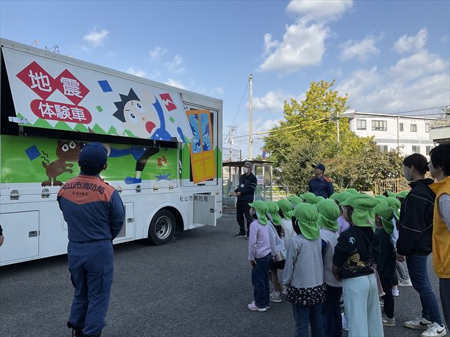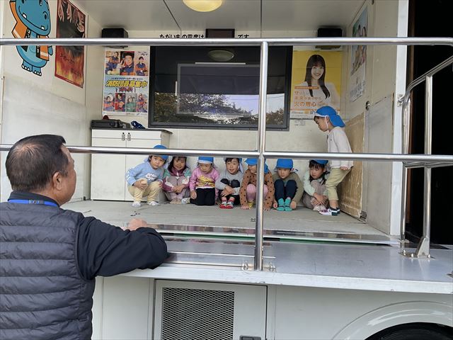 4歳・5歳児は、地震体験車に乗りました。