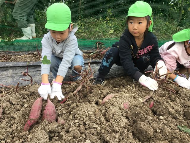 11月17日 年長児がアルムの里自然体験でさつまいも掘りをしました。
