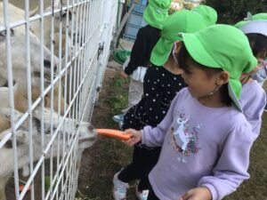 ヤギのエサやりの体験もしました。勢いよく食べていたので、「おなかがすいていたんだねえ」と優しくあげていましたよ。