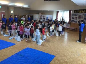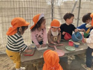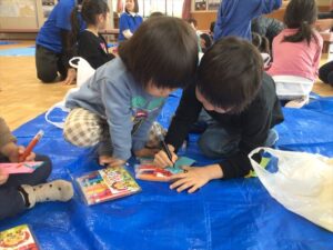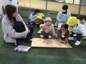 3歳以上児は3クラス合同で23日のお店屋さんごっこの準備をしました。お家の方にも〇✖クイズに参加してもらったり、景品作りを手伝ってもらったりしました。
