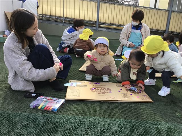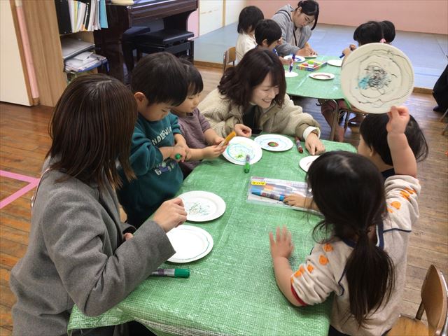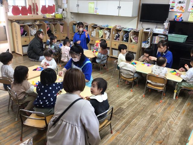 3歳未満児はお家の方と一緒に遊んだり、制作をしたりしました。