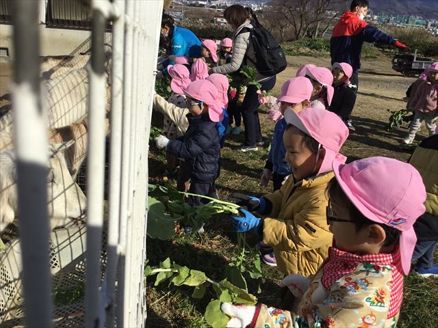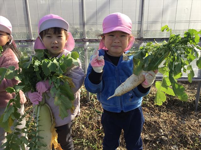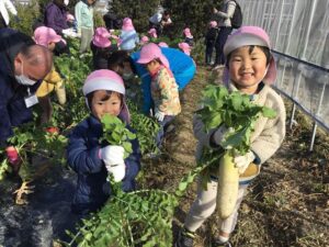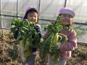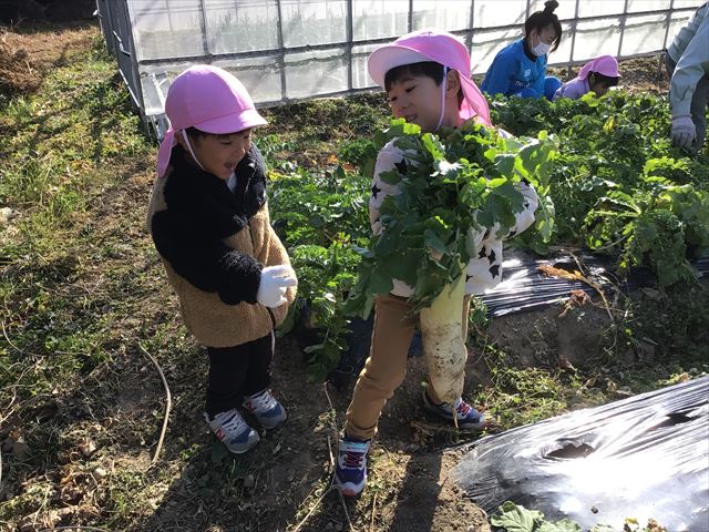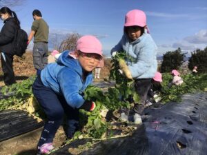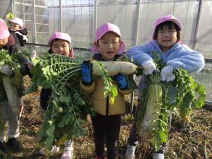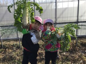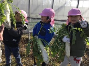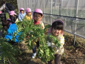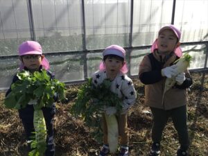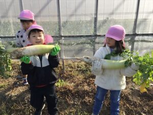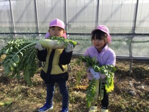 11月26日 年少クラスがアルムの里自然体験で大根掘りの体験をしました。