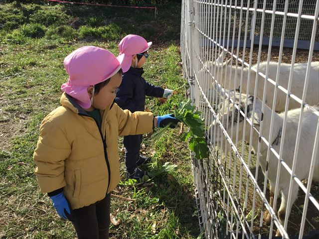 気温が上がってきたので、やぎのエサやり体験も行いました。