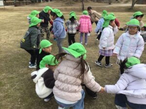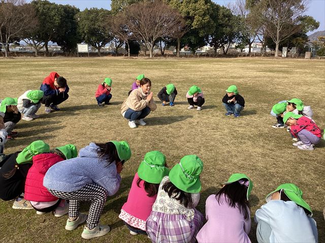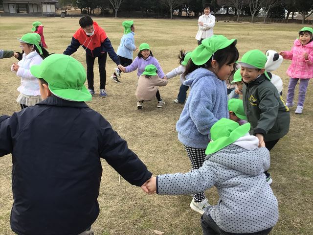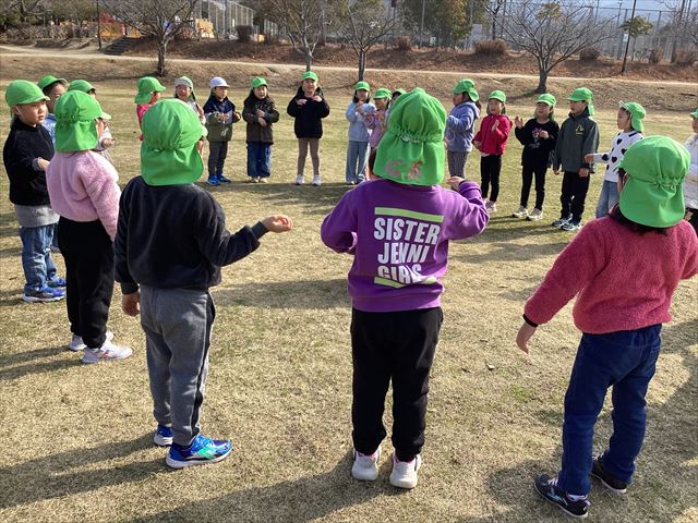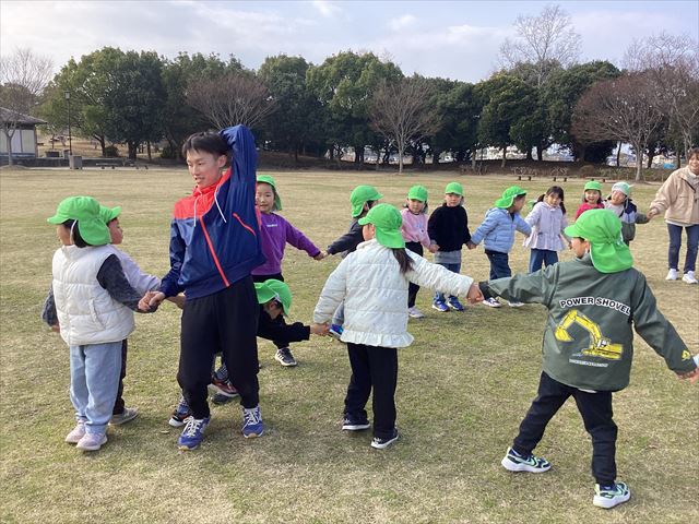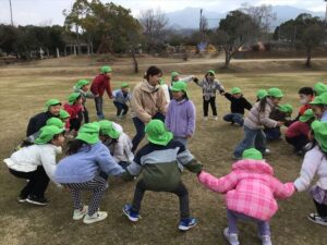 その後は、文化の森の芝生公園で、しっぽ取りゲームや集団遊びを楽しみました。