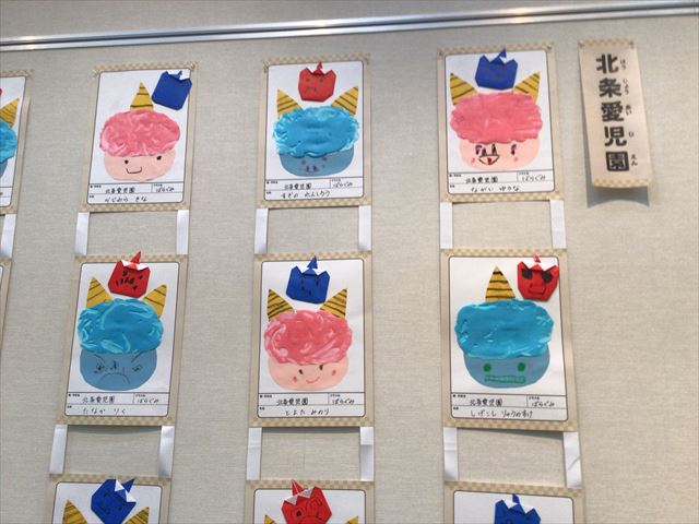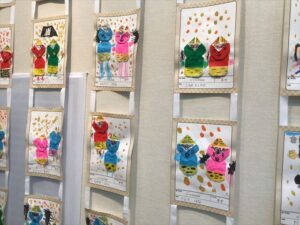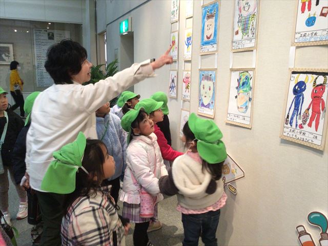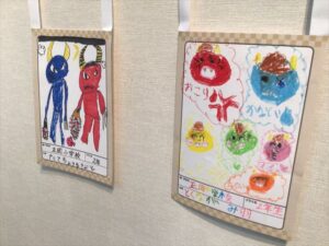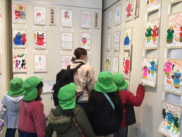 色々な手法で描かれたり、作られたりした鬼の作品に子ども達じっくりと見ていました。