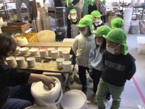 ろくろから出た、粘土を触らせてもらい、とっても嬉しそうでした。