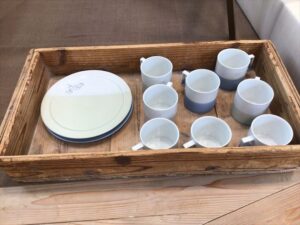 職人さんが作ったお皿の仕上がりを見て、「可愛い」「さっきの色と違うね」と
