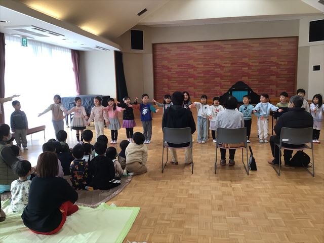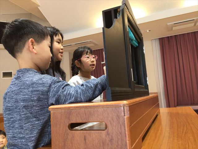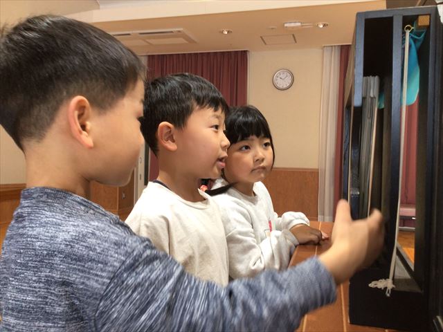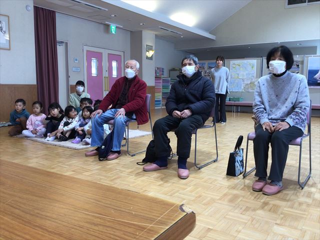 年中クラスと、0歳児クラスのお友だちが見に来てくれて、みんな真剣に聞いていました。