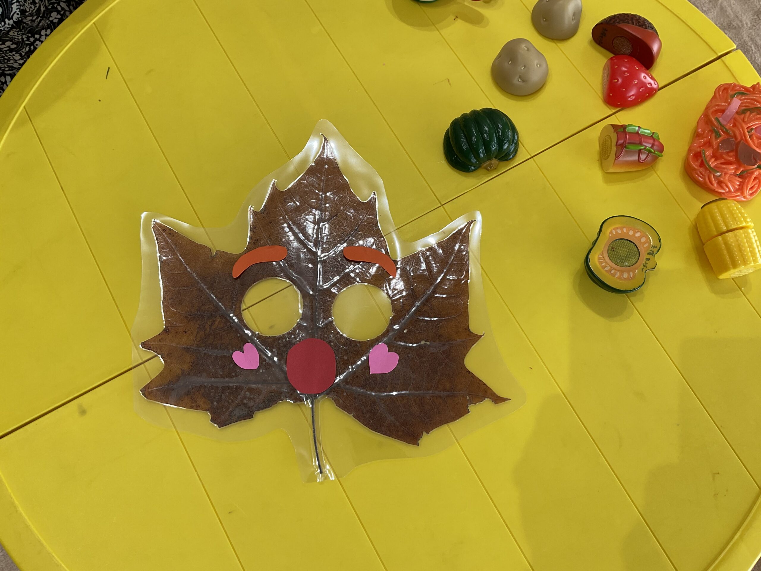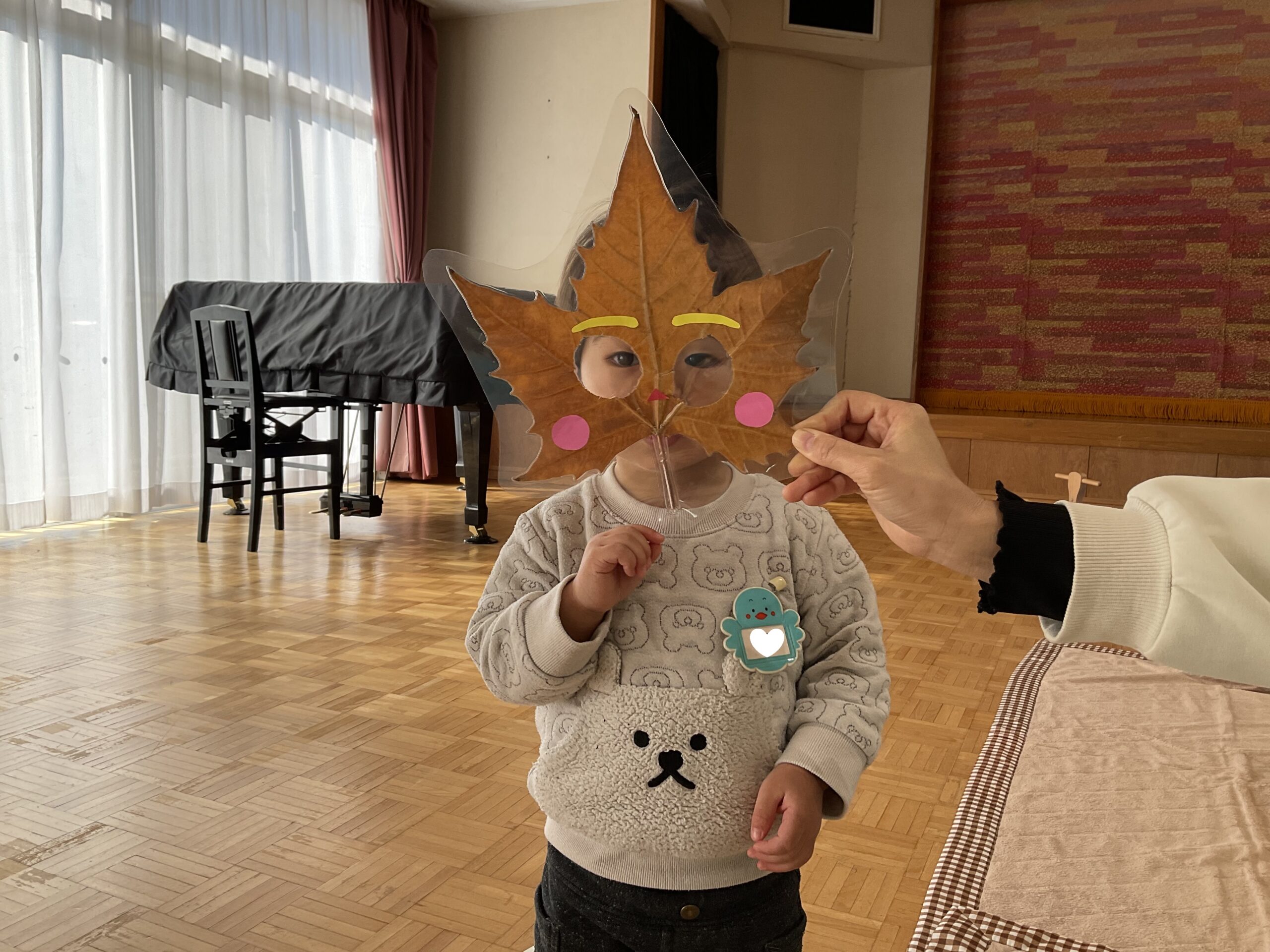制作は、プラタナスの葉を使った鬼のお面です😊